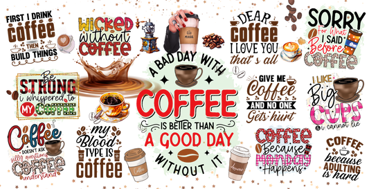 Coffee Quotes | UV DTF Wrap for Cups | Ready to Apply Permanent