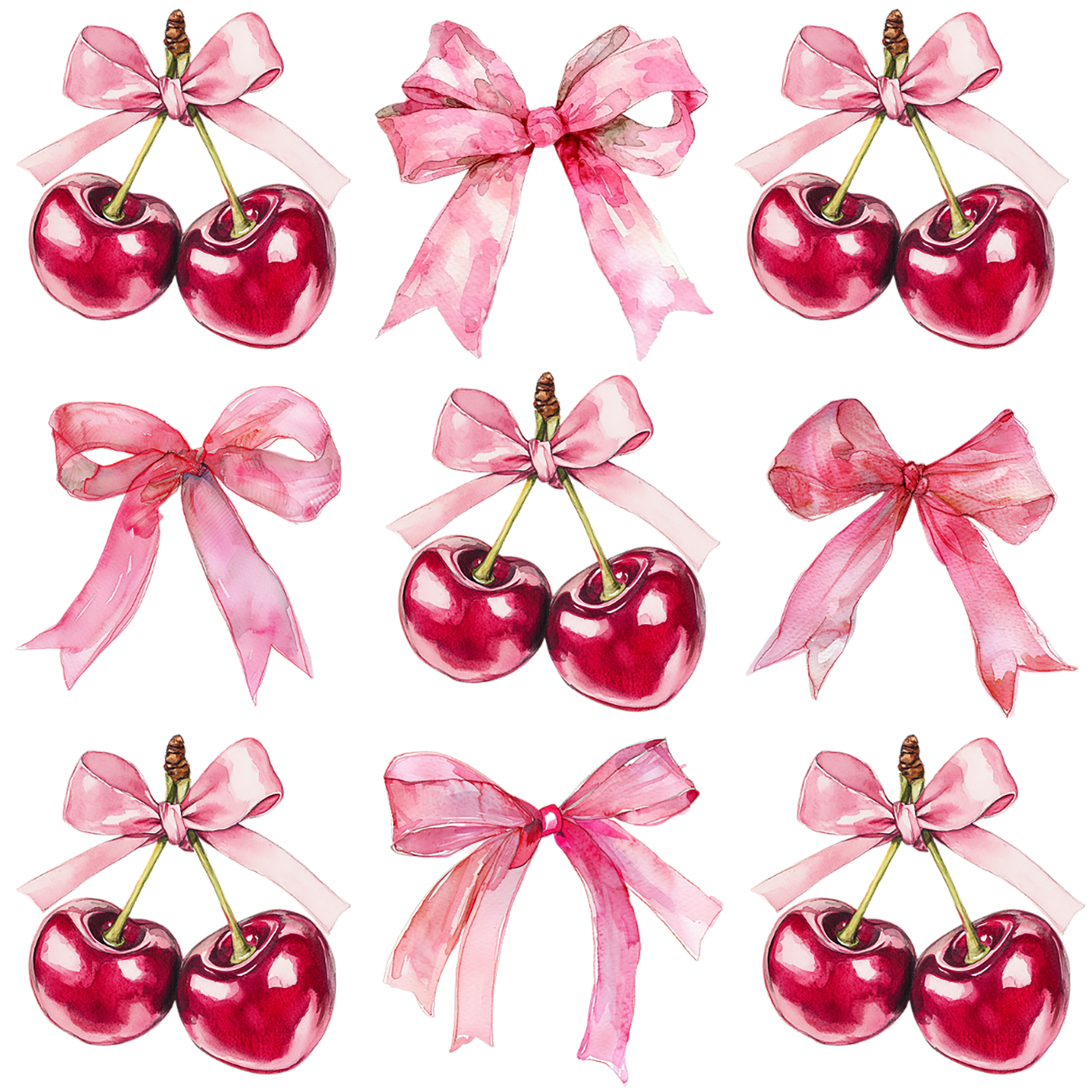 Cherries and Bows UV DTF Element Sheet | Waterproof, Permanent Transfer