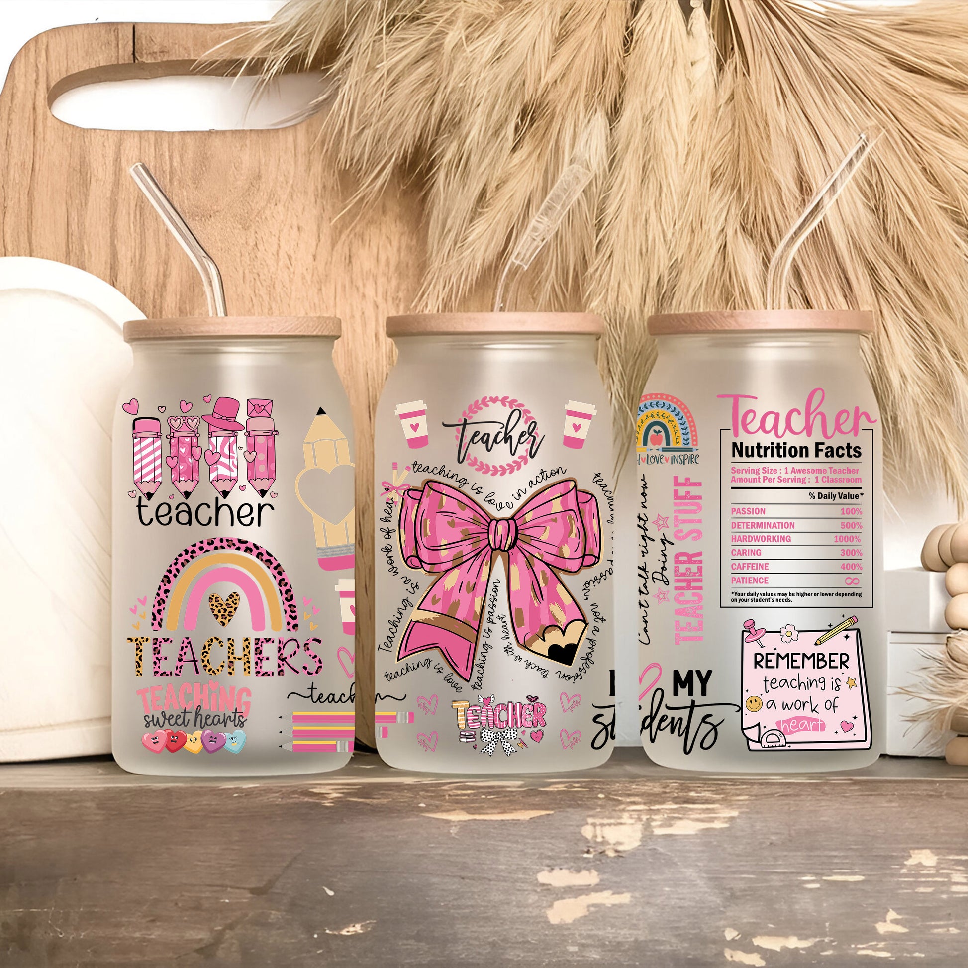 Coquette Pink Teacher | UV DTF Wrap for Cups | Ready to Apply Permanent