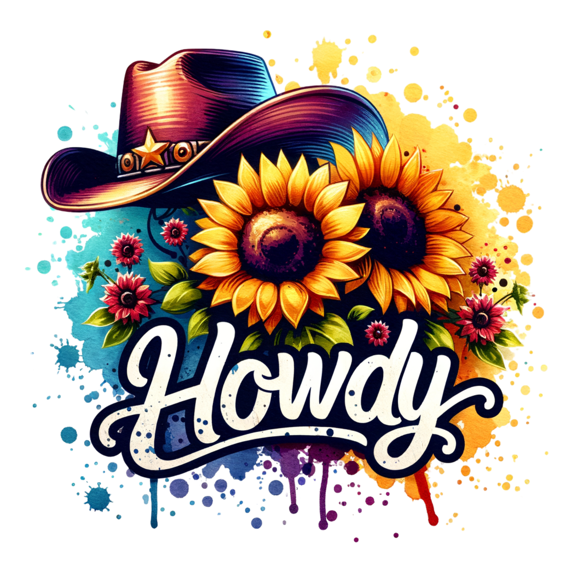 Howdy Sunflowers UV DTF Decal | Waterproof, Permanent Transfer