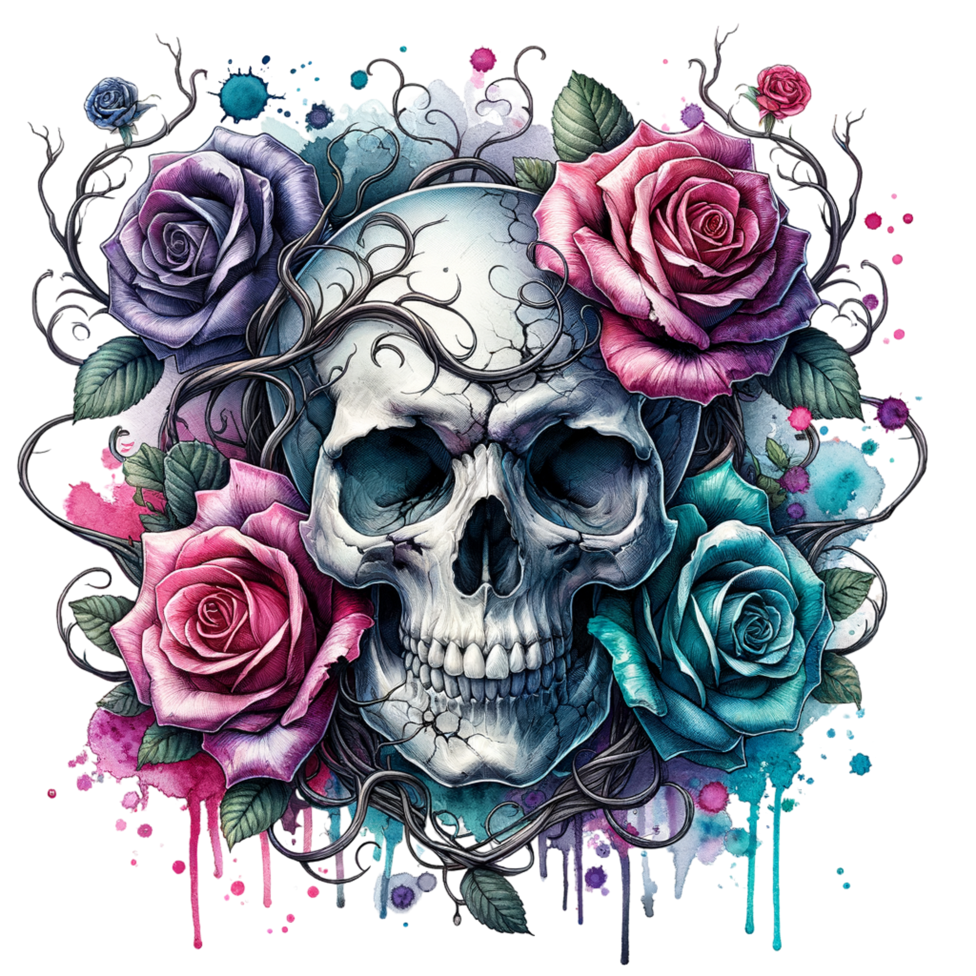 Skulls & Florals UV DTF Decal| Waterproof, Permanent Transfer